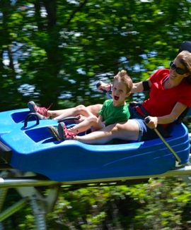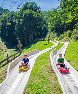 a fun-filled descent on one of two 1800′ tracks through woods and ski trails!